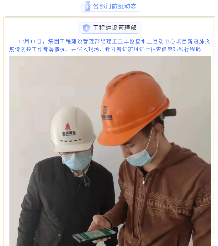 為貫徹落實省、市、區(qū)疫情防控工作視頻會議精神,婺城區(qū)城投集團全員行動,在集團疫情防控工作體系的框架下,分別以職能部門和子公司、項目為主體,制定切合實際、有操作性的疫情防控方案,同時組織紀檢專班力量,成立督查應急小組,對各工地(項目)疫情防控措施設置情況進行督查督辦,集團上下全面緊起來、嚴起來,疫情防控工作氛圍濃郁。