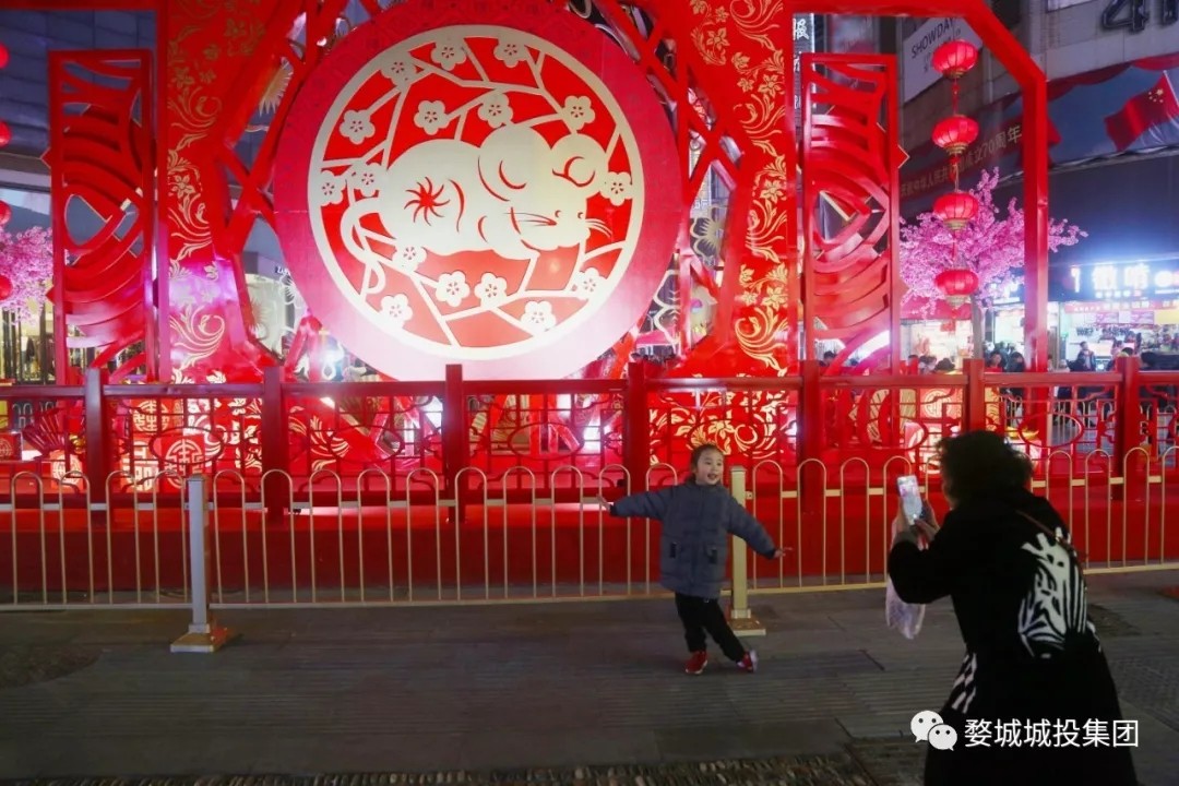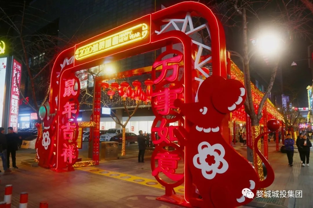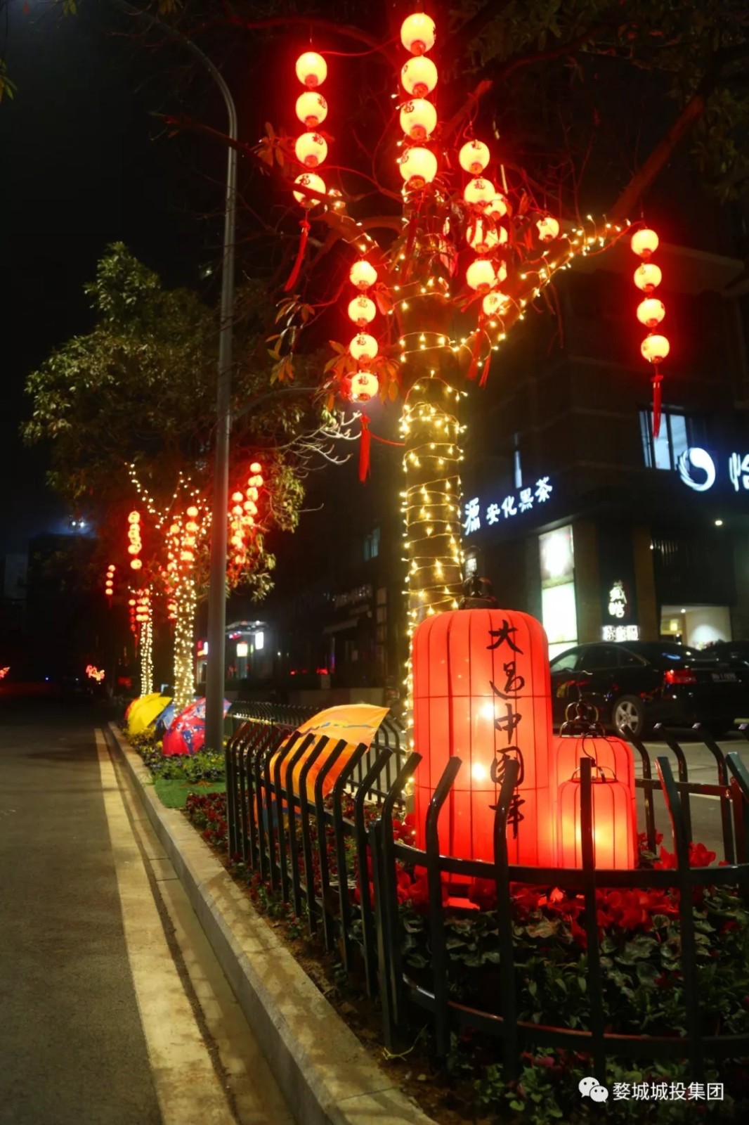 △雅堂街流光溢彩,通園路福瑞呈祥,新城區(qū)火樹銀花。