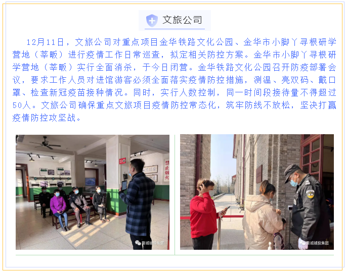 繼省、市、區(qū)疫情防控工作視頻會議召開后,婺城區(qū)城投集團深刻認識到疫情防控形勢的嚴峻性、復雜性、緊迫性,從“平時”模式轉(zhuǎn)入“戰(zhàn)時”機制,12月11日,集團全面部署、立即落實,第一時間印發(fā)《關于進一步健全完善疫情防控工作體系的通知》,制定《金華市婺城區(qū)城鄉(xiāng)建設投資集團有限公司疫情防控督查表》,在周末全員不休,集中精力開展重點項目和主要場所疫情防控攻堅的基礎上,組織其余干部職工前往聯(lián)系社區(qū),會同社區(qū)工作人員開展疫情防控工作,壓緊壓實責任,以鐵的擔當、鐵的紀律對疫情防控工作進行再細化、再落實,一鼓作氣堅決打贏這場疫情防控阻擊戰(zhàn)。